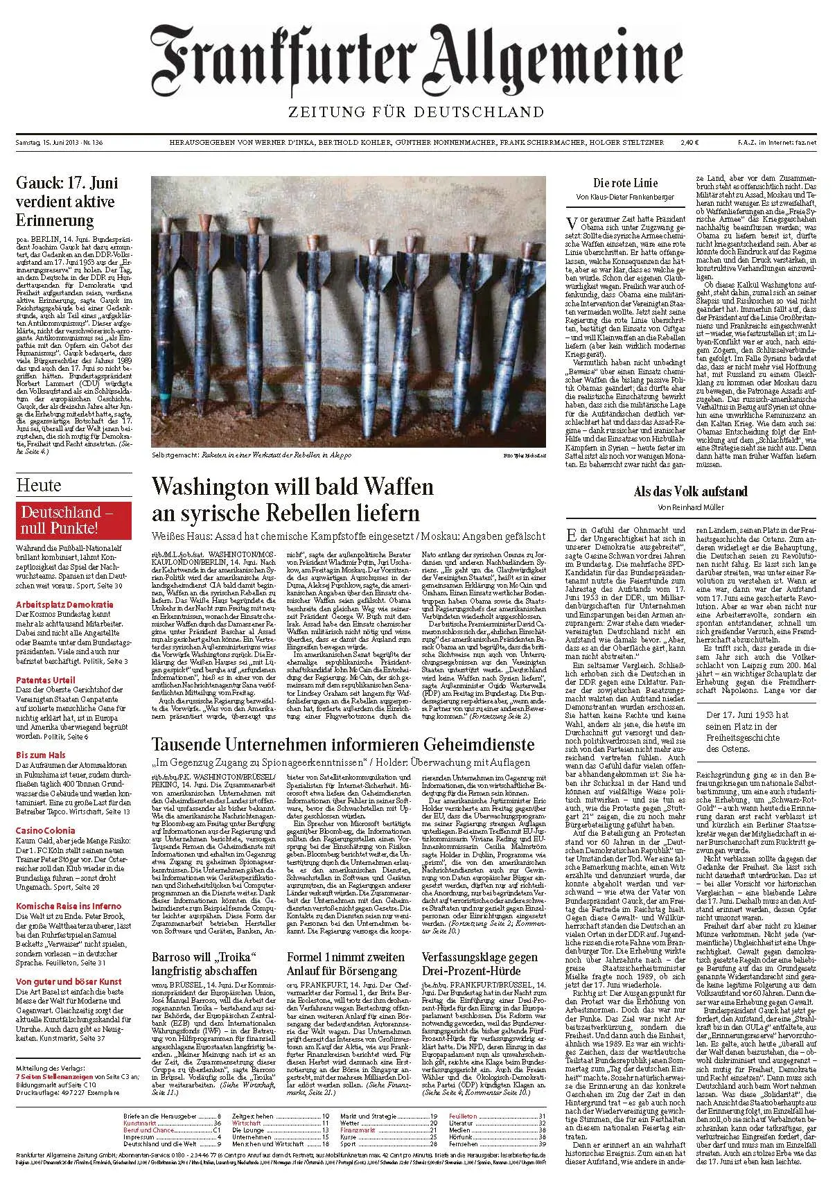 Frankfurter Allgemeine Zeitung vom Samstag, 15. Juni 2013