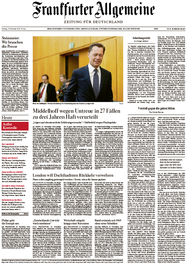 Frankfurter Allgemeine Zeitung vom Samstag, 15. November 2014