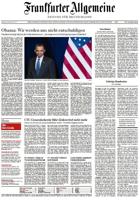 Frankfurter Allgemeine Zeitung vom Samstag, 18. Januar 2014