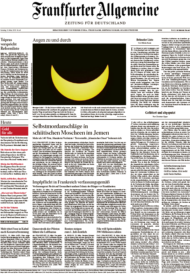 Frankfurter Allgemeine Zeitung vom Samstag, 21. März 2015