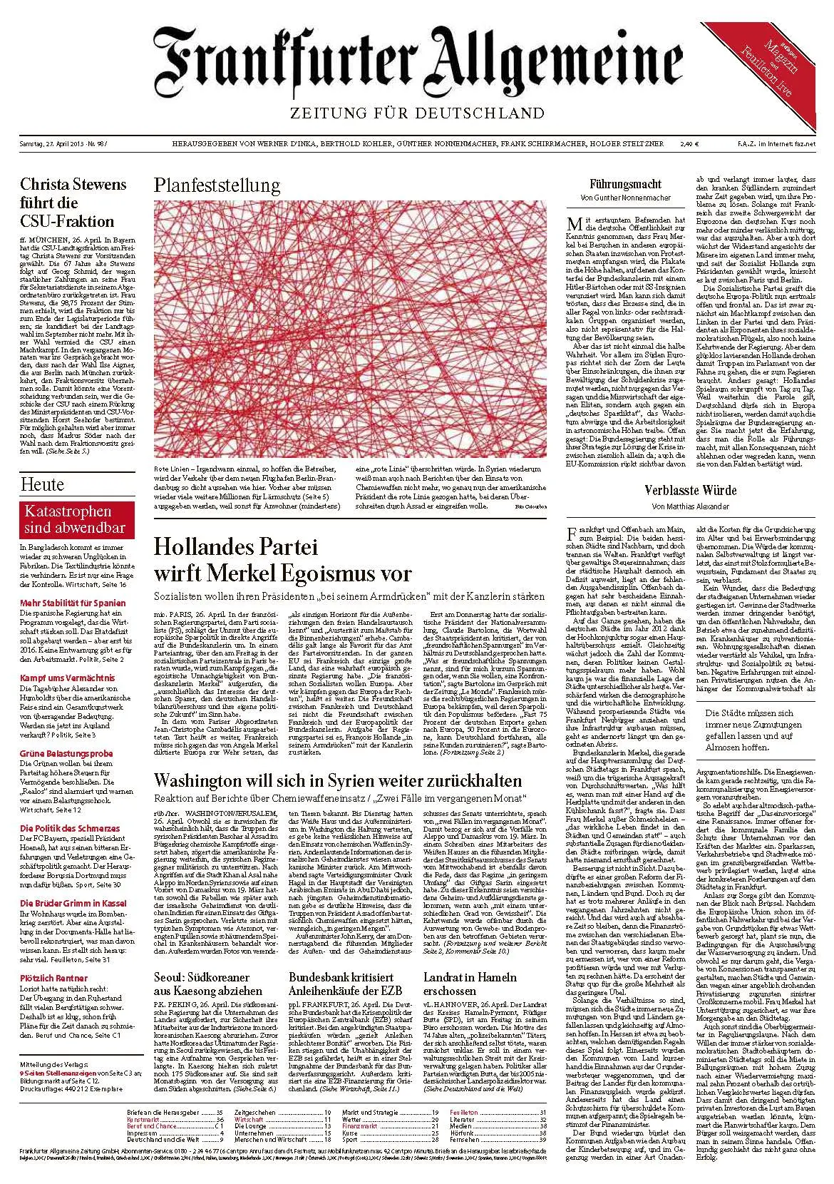 Frankfurter Allgemeine Zeitung vom Samstag, 27. April 2013