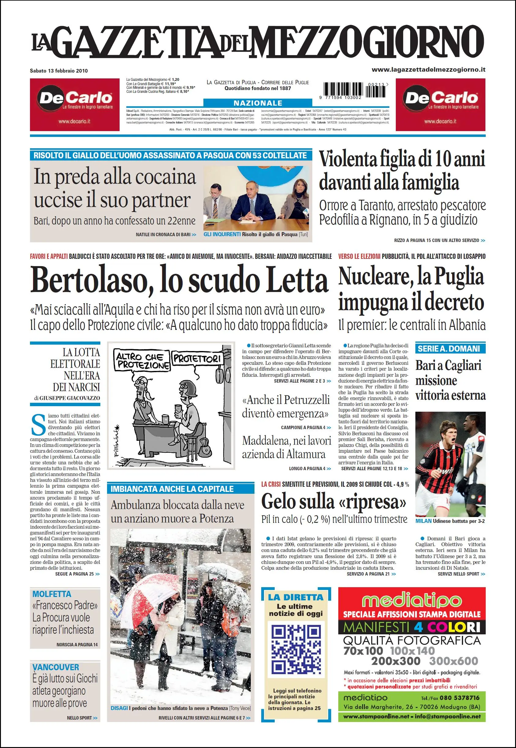 LA GAZZETTA DEL MEZZOGIORNO (13 - 02 - 2010)