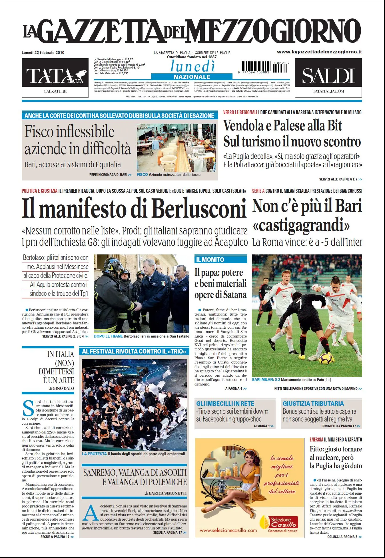 LA GAZZETTA DEL MEZZOGIORNO (22 - 02 - 2010)