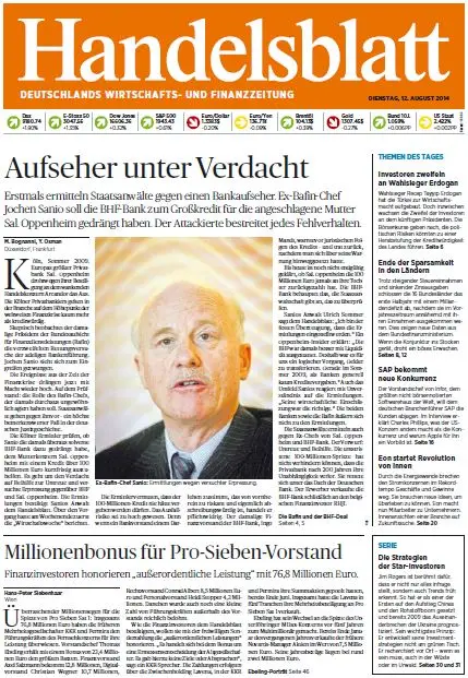 Handelsblatt vom Dienstag, 12. August 2014