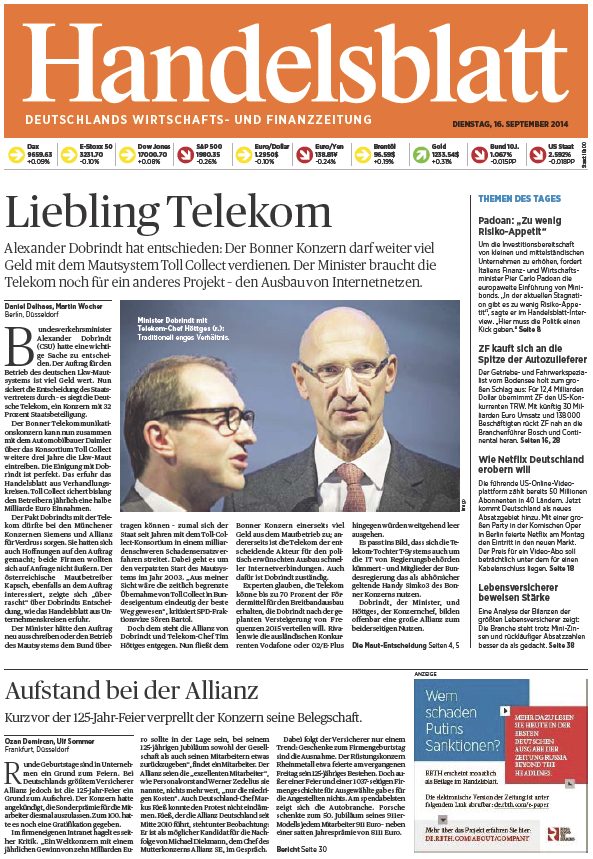Handelsblatt vom Dienstag, 16. September 2014