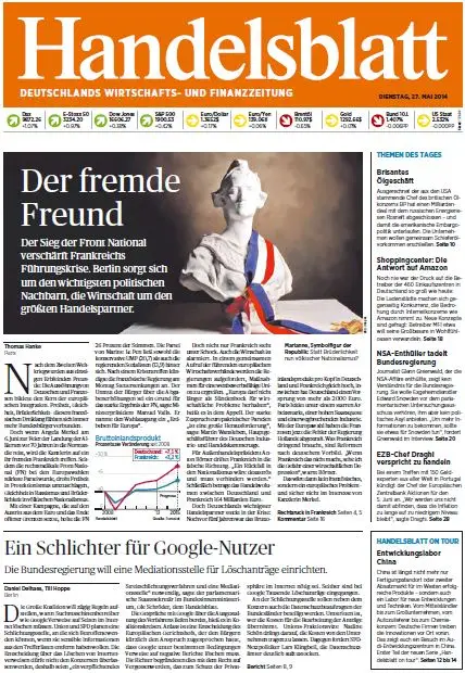 Handelsblatt vom Dienstag, 27. Mai 2014