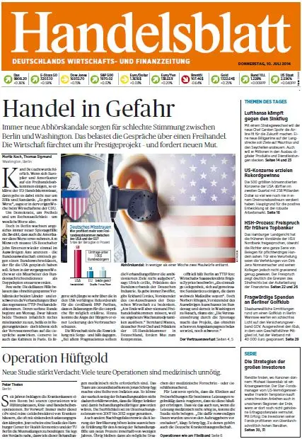 Handelsblatt vom Donnerstag, 10. Juli 2014