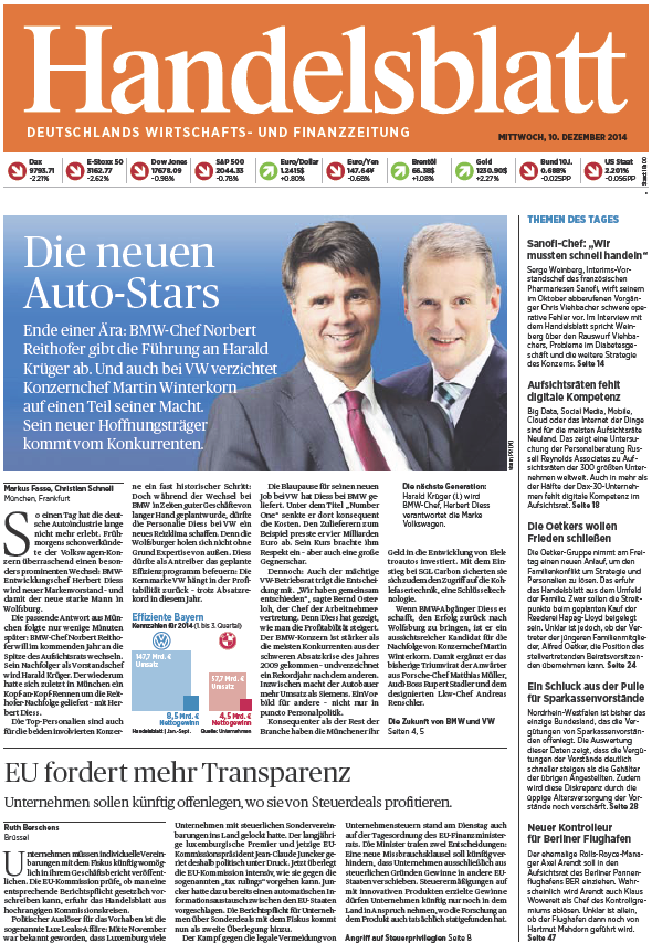 Handelsblatt vom Mittwoch, 10. Dezember 2014