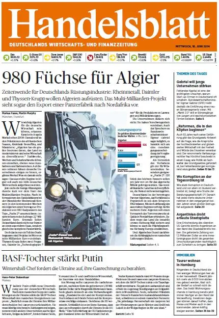 Handelsblatt vom Mittwoch/Donnerstag, 18./19. Juni 2014