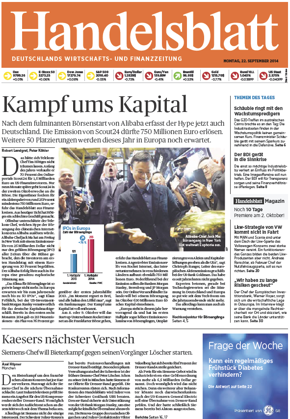 Handelsblatt vom Montag, 22. September 2014