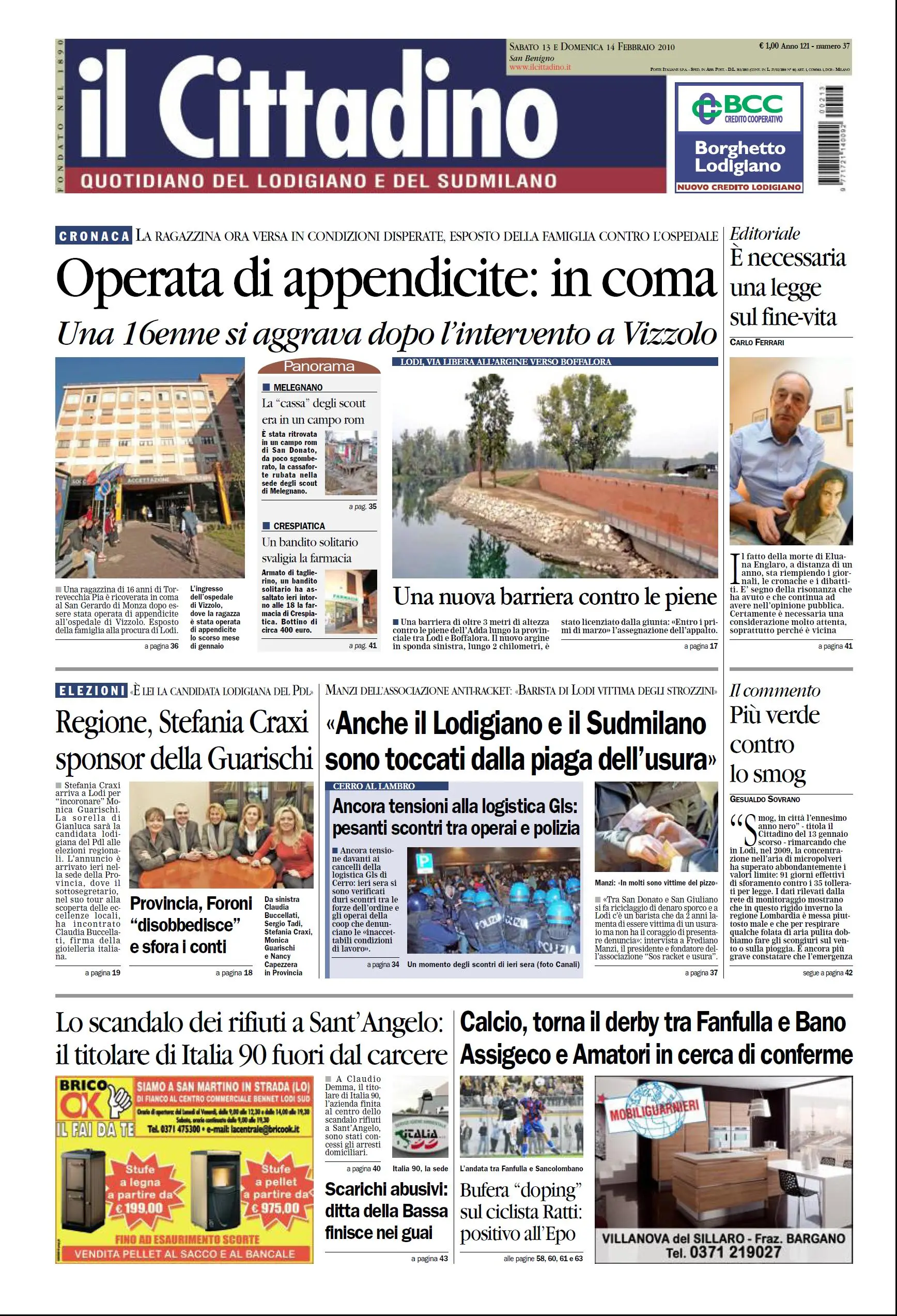 IL CITTADINO LODIGIANO E SUD MILANO (13 - 02 - 2010)