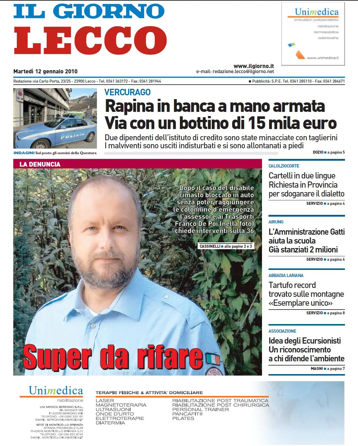 IL GIORNO DI LECCO (12 - 01 - 2010)