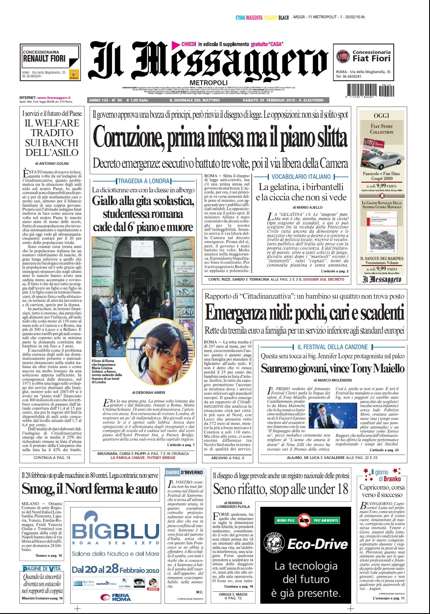 IL MESSAGGERO (20 - 02 - 2010)