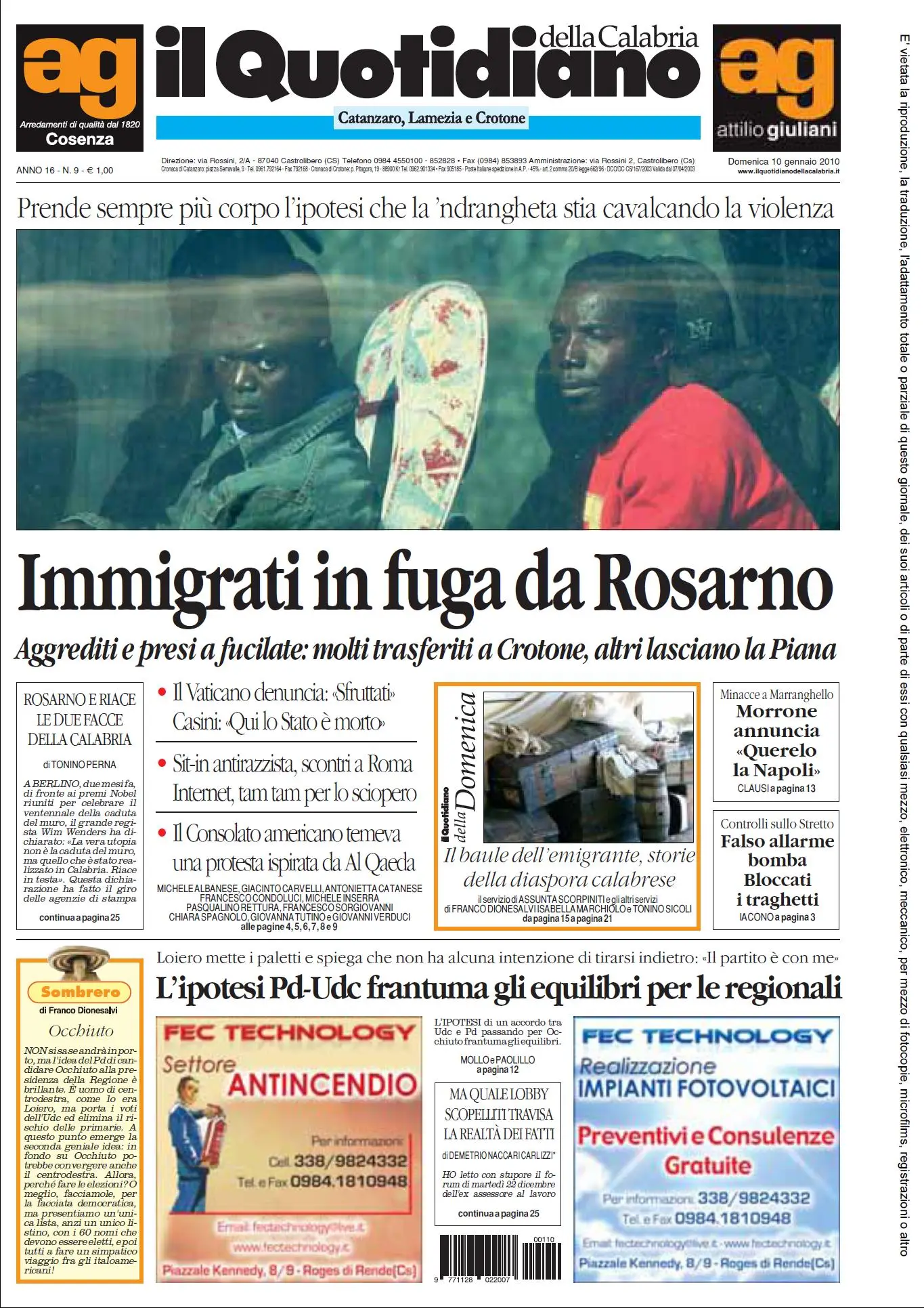 IL QUOTIDIANO DELLA CALABRIA (10 - 01 - 2010)