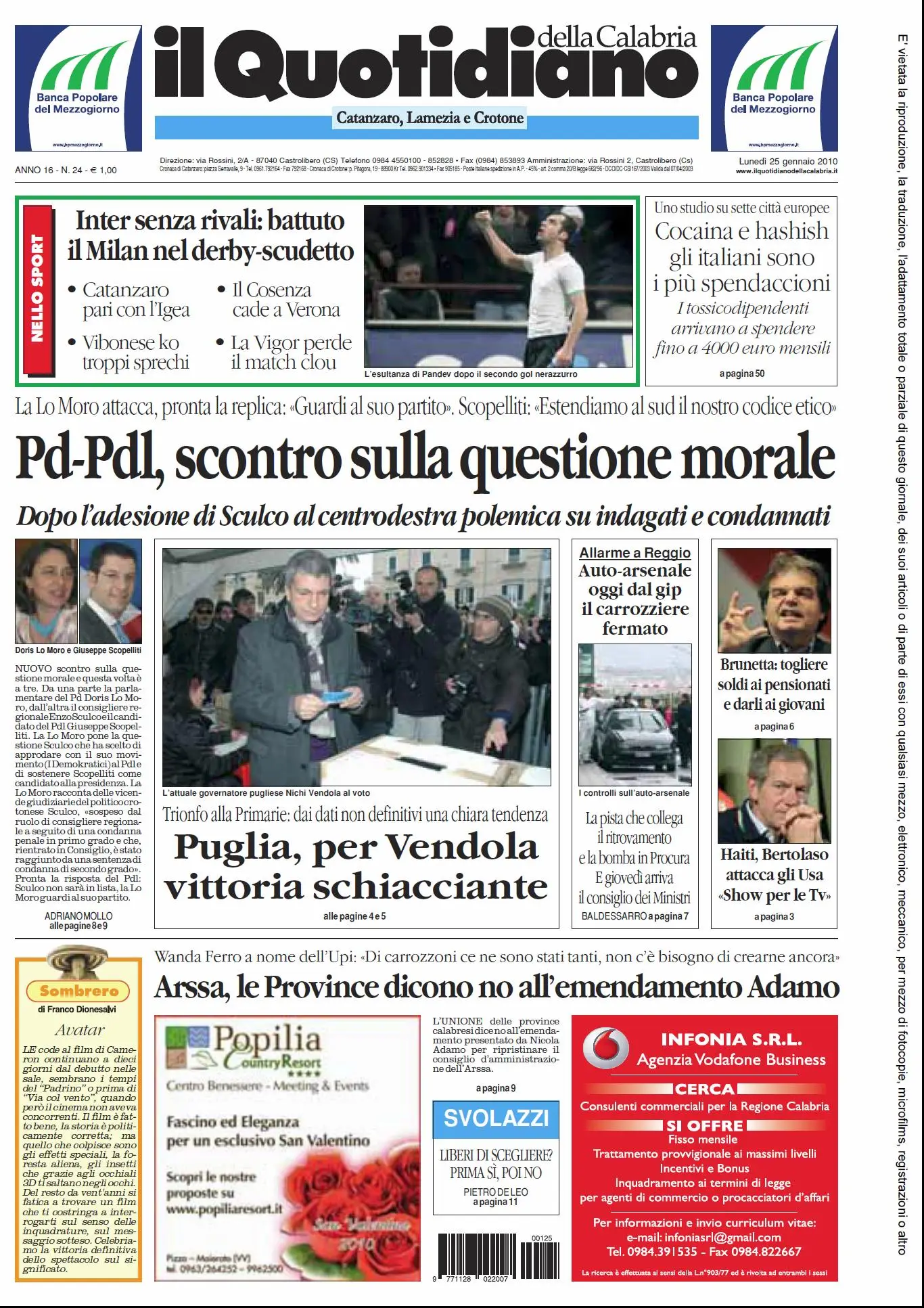 IL QUOTIDIANO DELLA CALABRIA (25 - 01 - 2010)