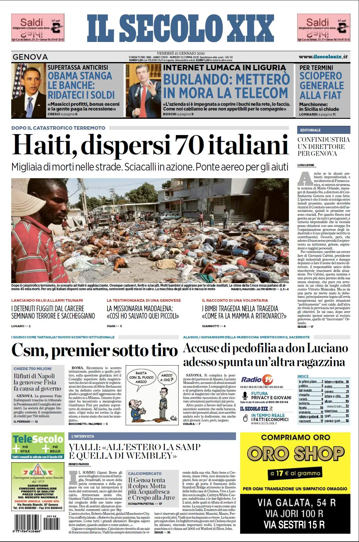 IL SECOLO XIX (15 - 01 - 2010)