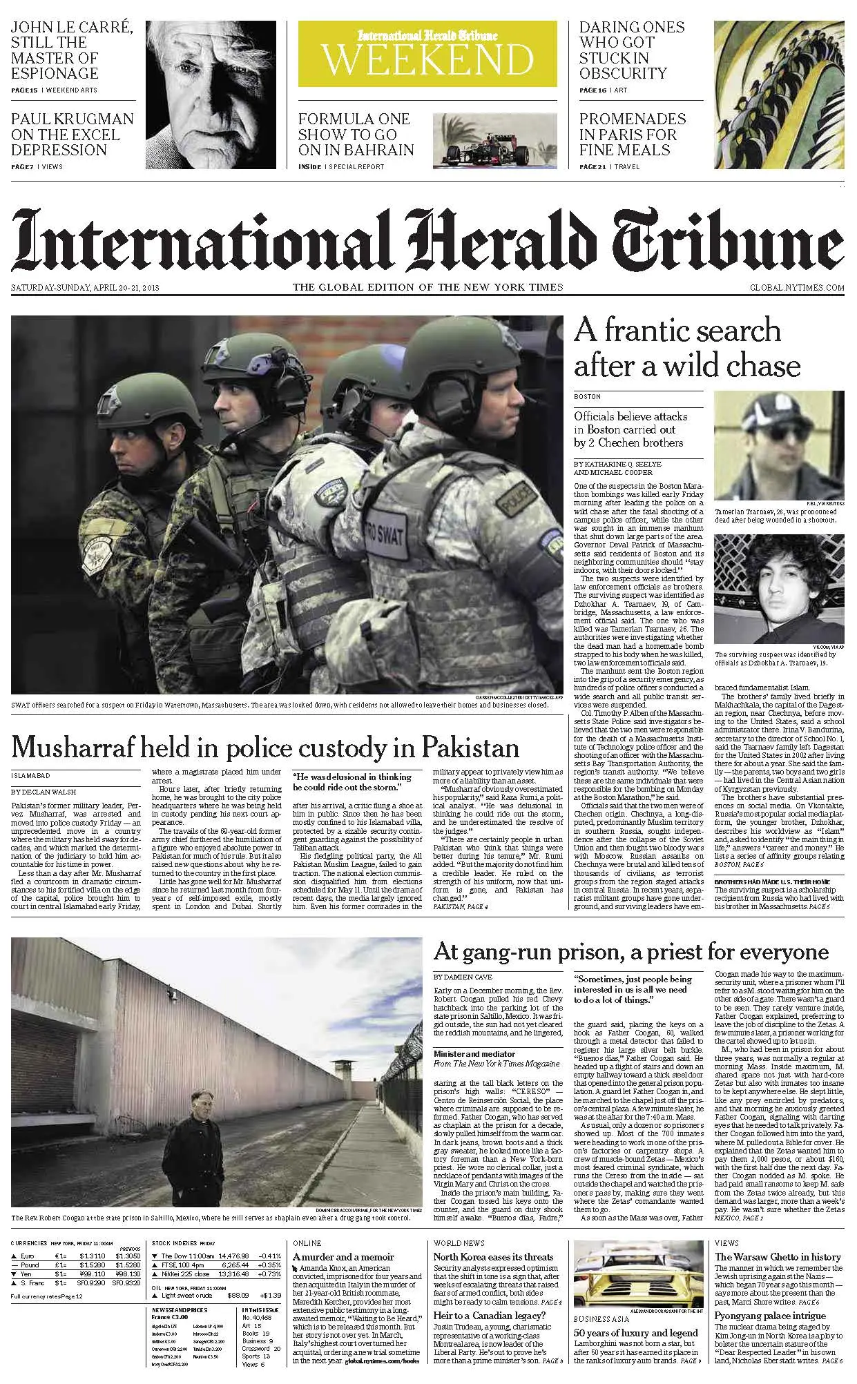 International Herald Tribune Asia from Saturday, 20. April 2013