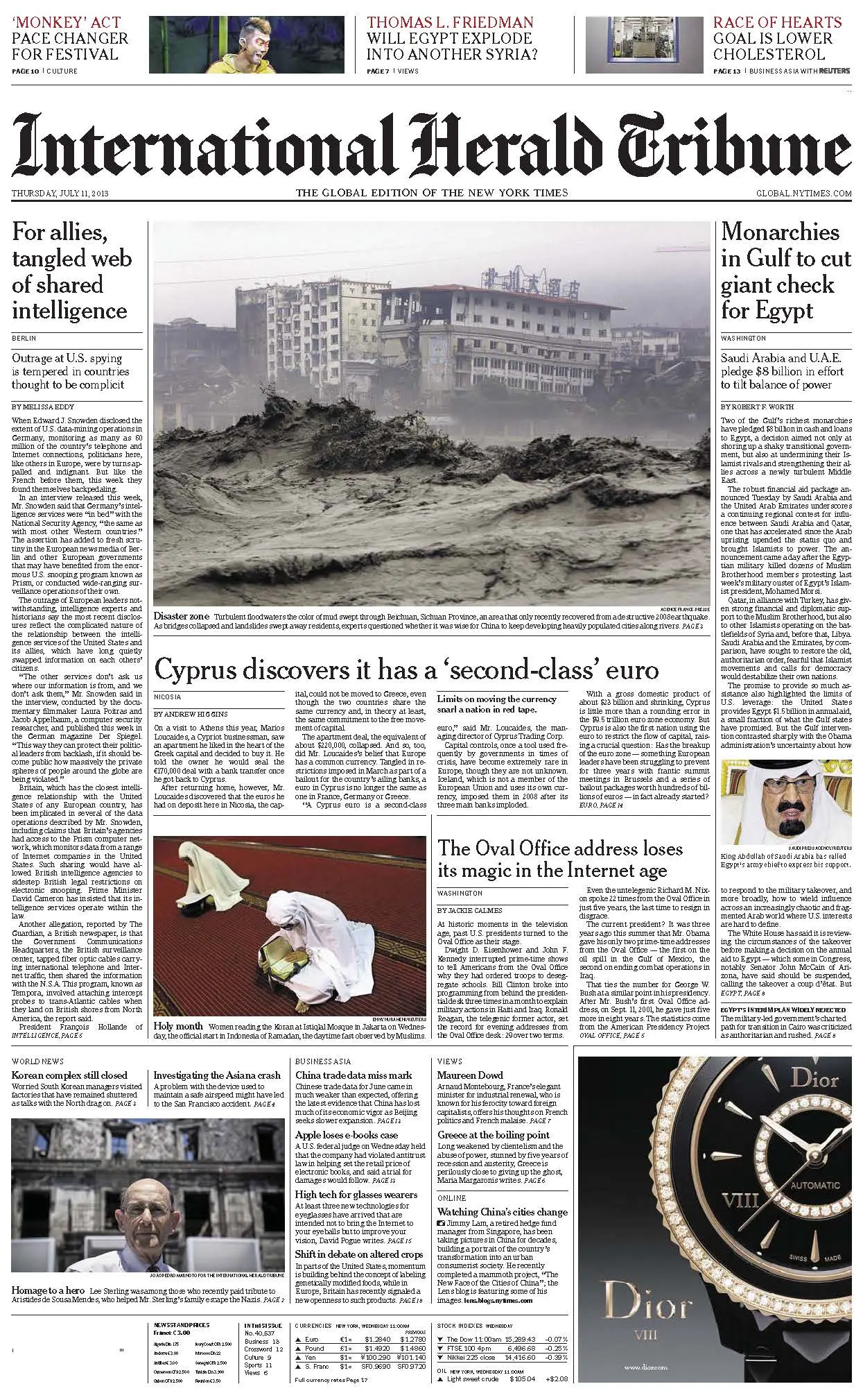 International Herald Tribune Asia from Thursday, 11. July 2013