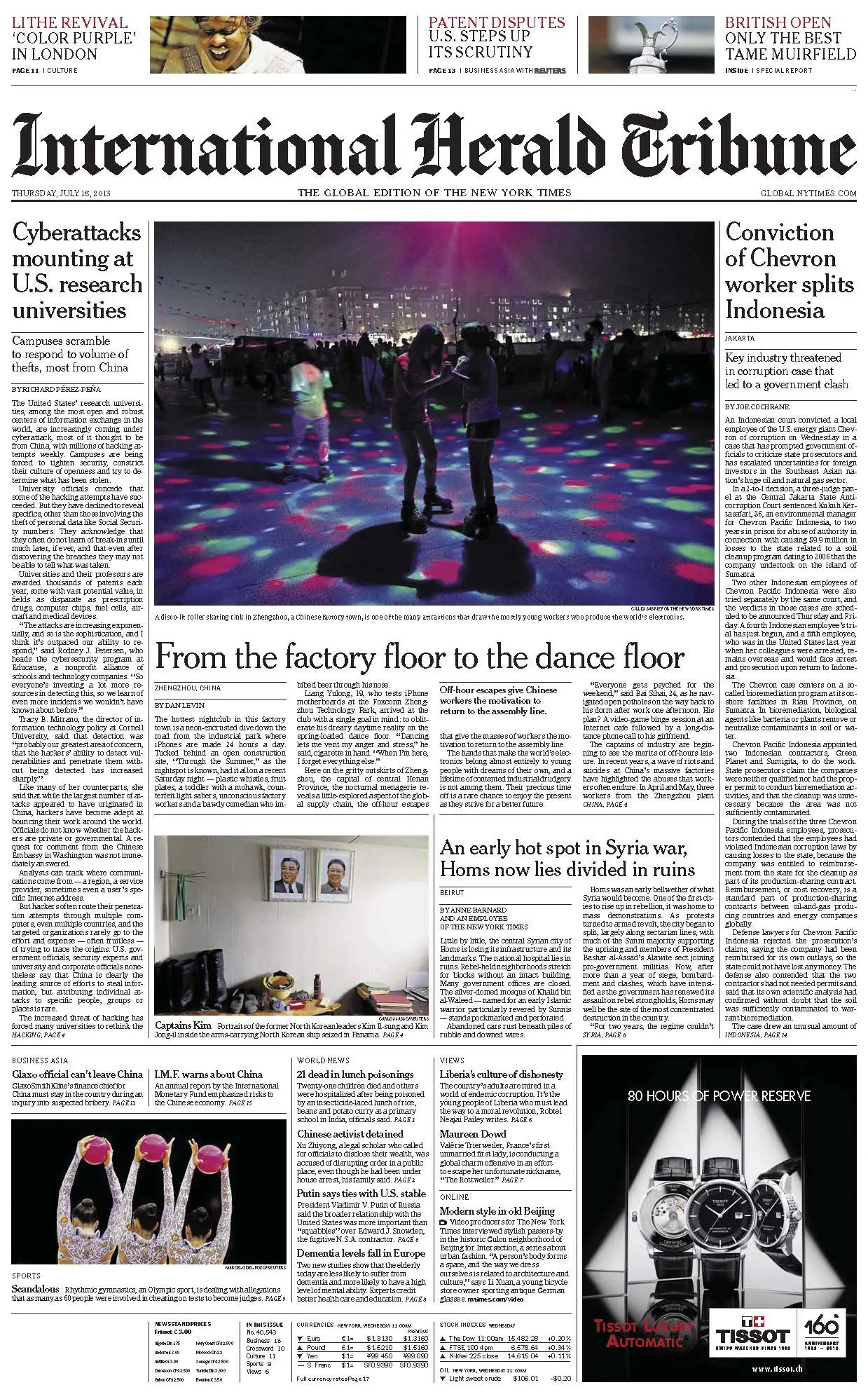 International Herald Tribune Asia from Thursday, 18. July 2013