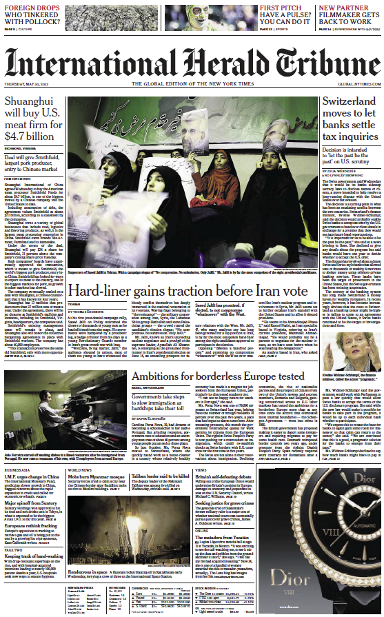 International Herald Tribune Asia from Thursday, 23. May 2013