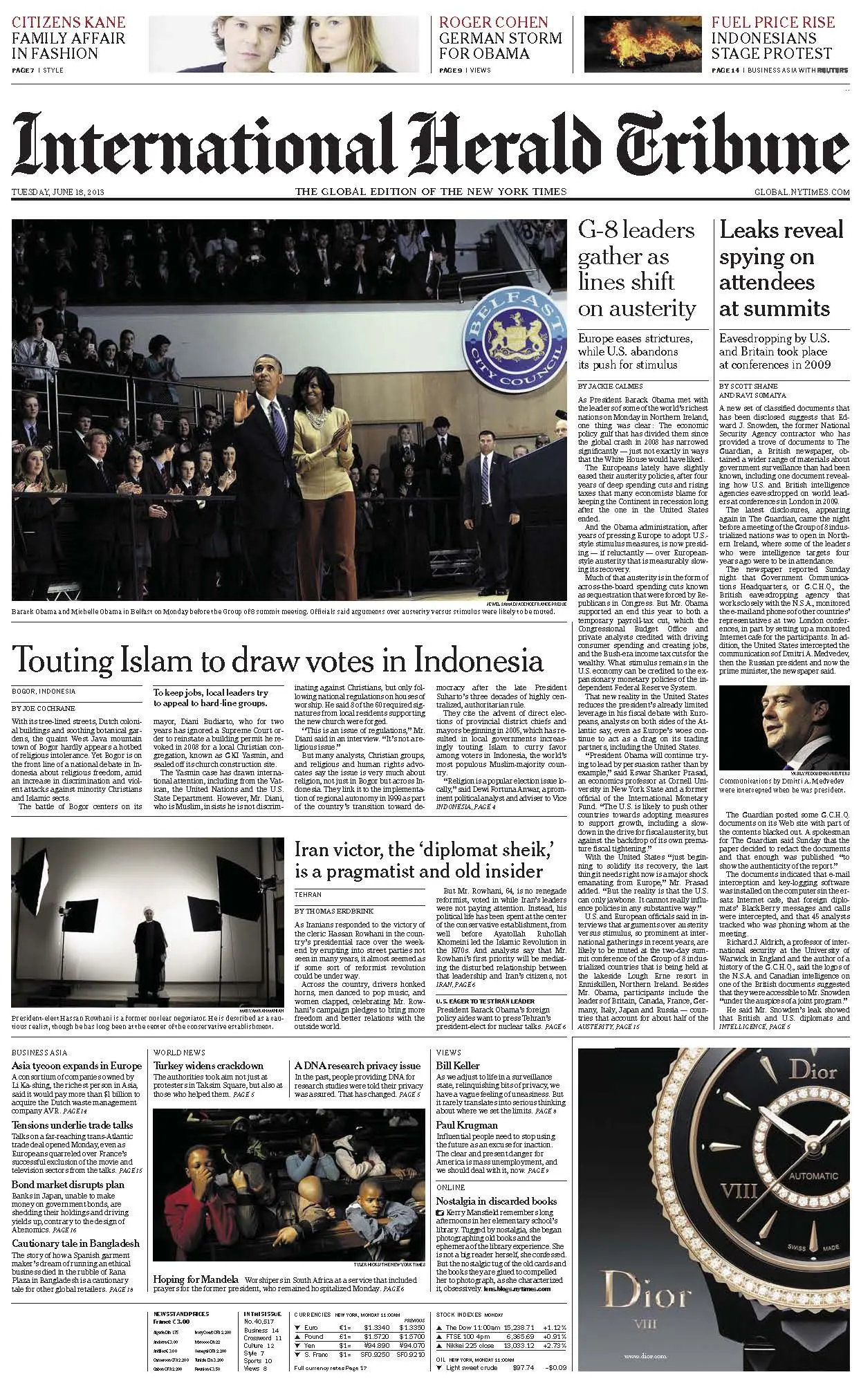 International Herald Tribune Asia from Tuesday, 18. June 2013