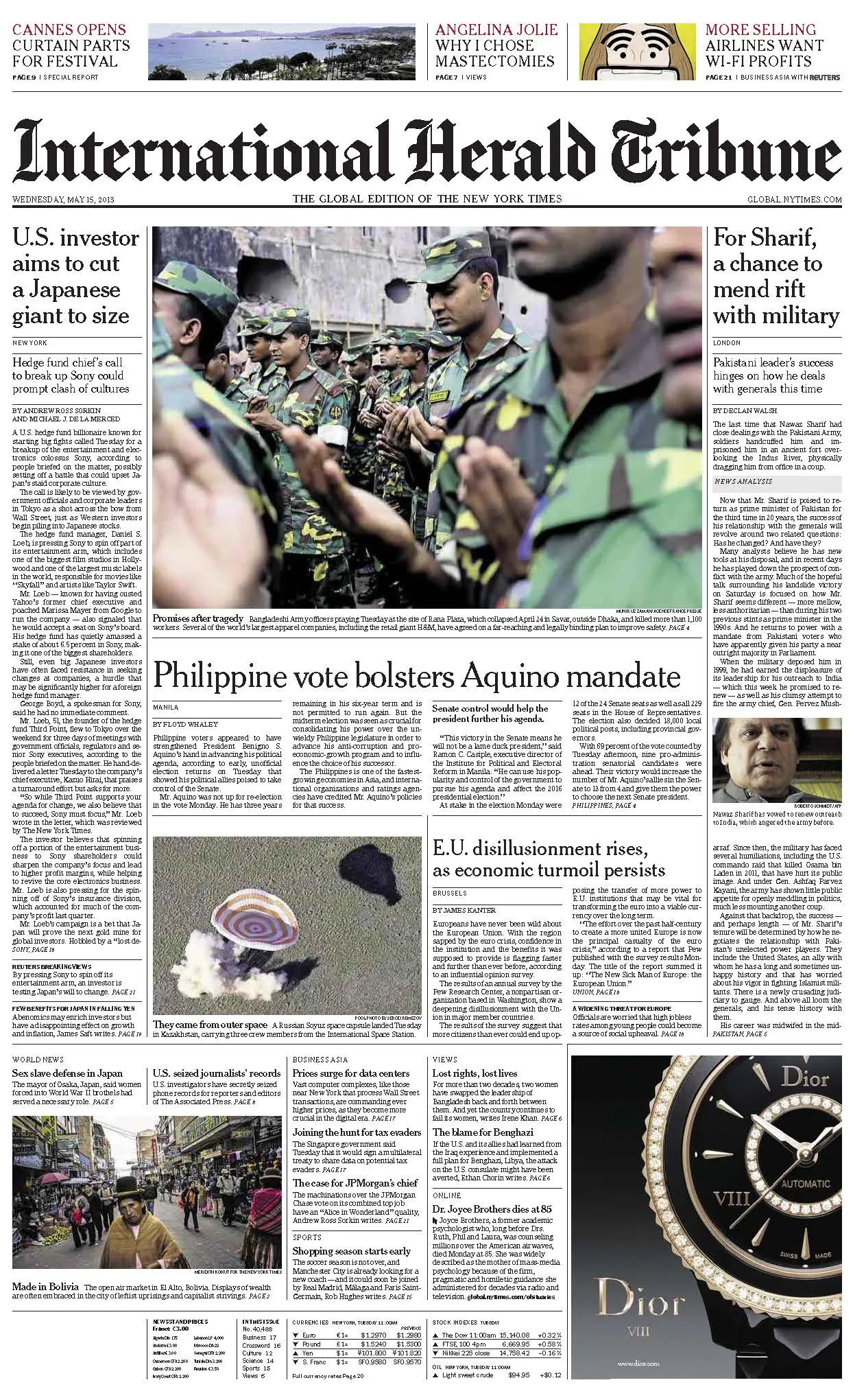 International Herald Tribune Asia from Wednesday, 15. May 2013