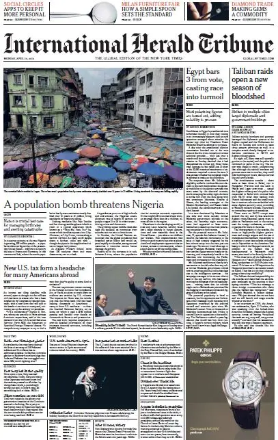 International Herald Tribune from Monday, 16. April 2012