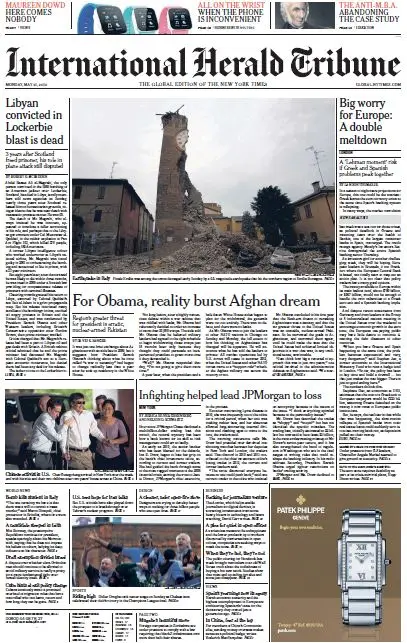 International Herald Tribune from Monday, 21. May 2012