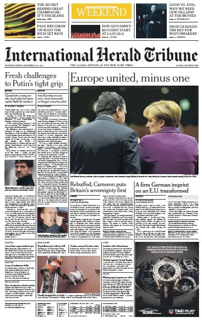 International Herald Tribune from Saturday, 10. December 2011