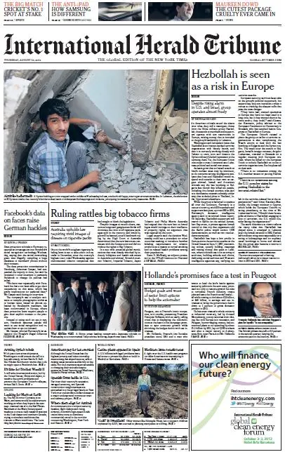 International Herald Tribune from Thursday, 16. August 2012