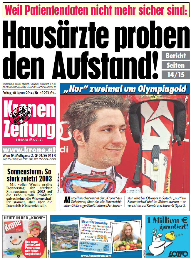 Kronen Zeitung, 10. Januar 2014