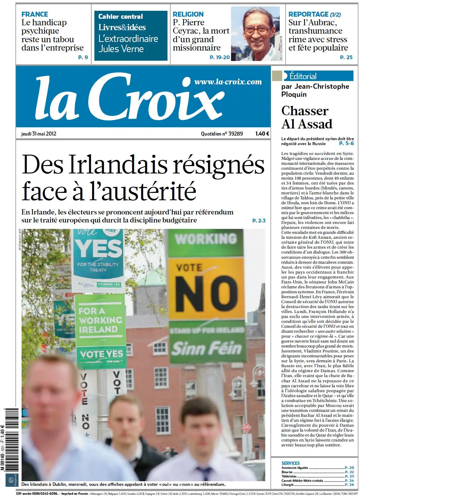 LA CROIX DU 31 Mai 2012