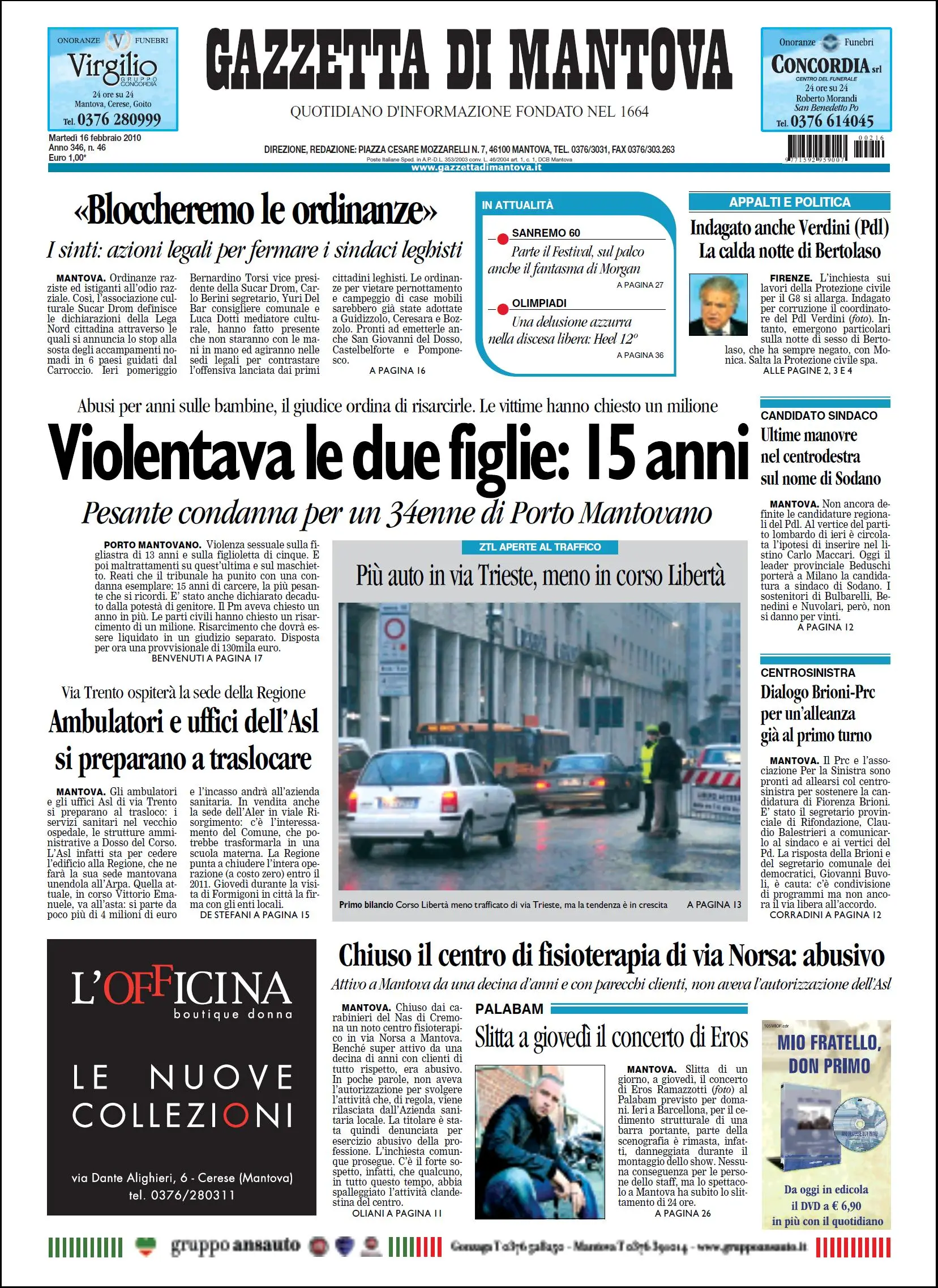 LA GAZZETTA DI MANTOVA (16 - 02 - 2010)