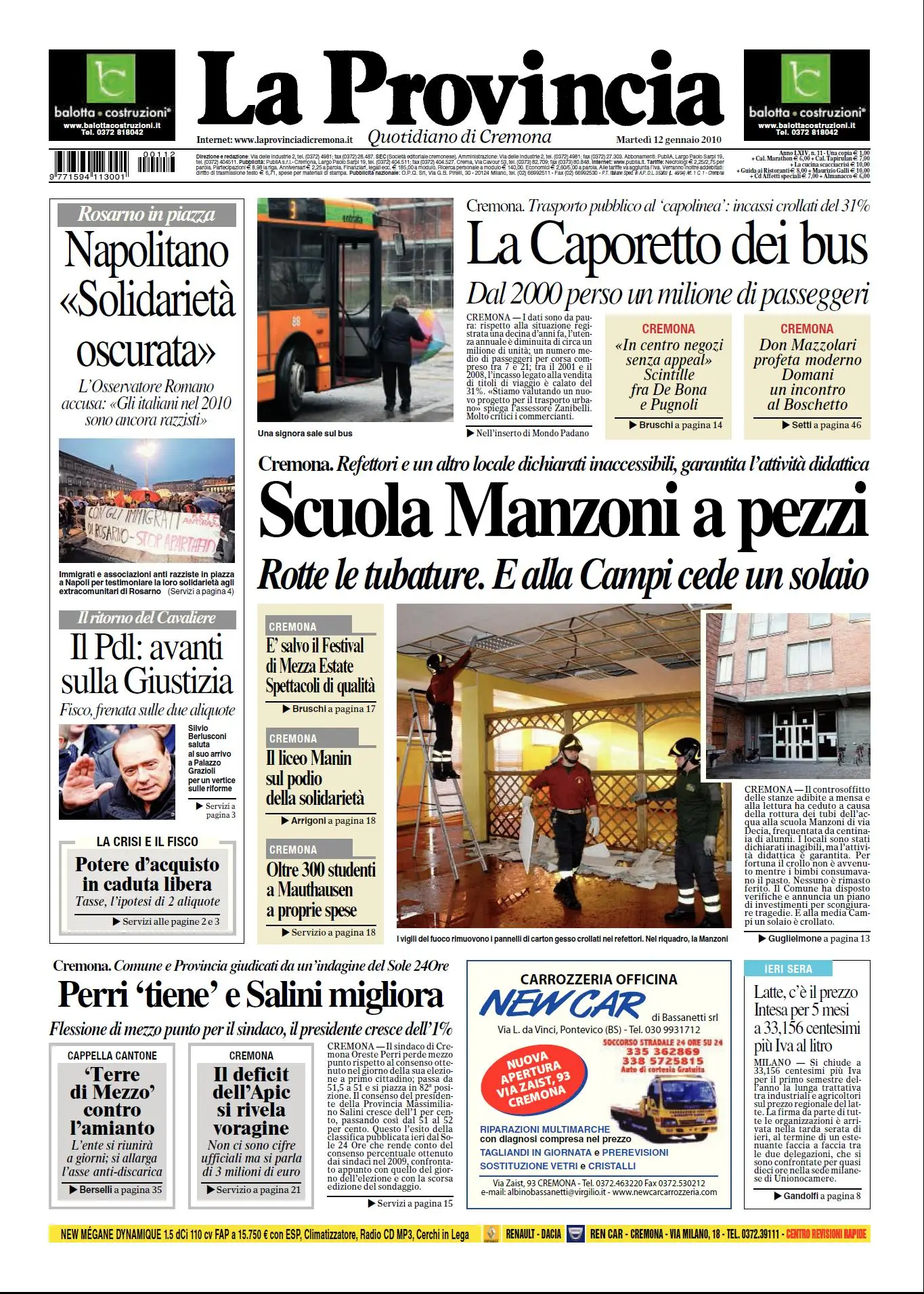 LA PROVINCIA DI CREMONA (12 - 01 - 2010)