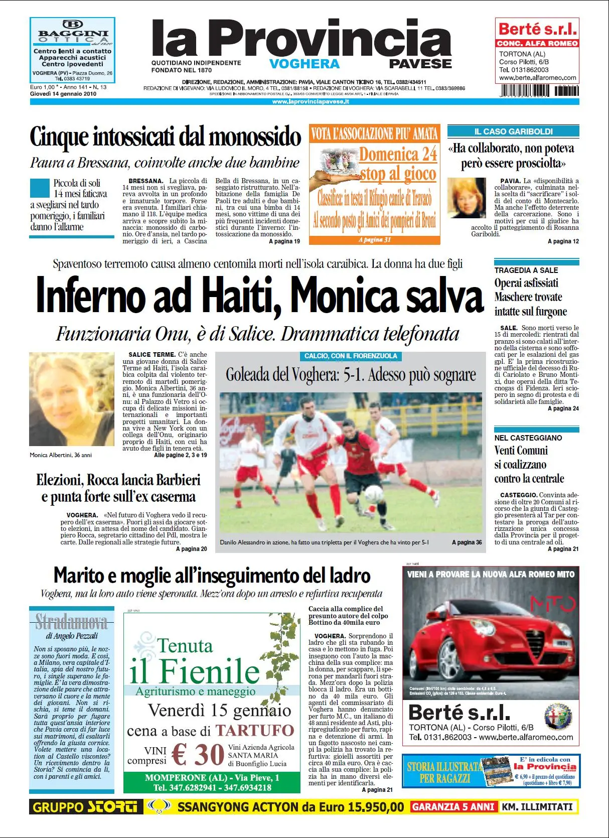 LA PROVINCIA PAVESE (14 - 01 - 2010)