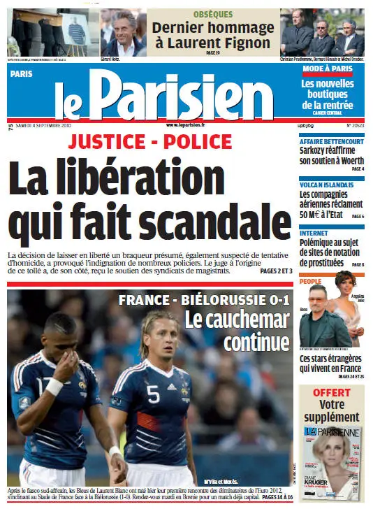 LE PARISIEN + cahier Paris - Samedi 4 septembre 2010