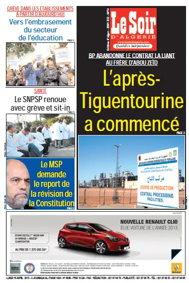 Le Soir d'Algerie - Lundi 15 Avril 2013