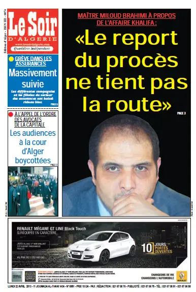 Le Soir d'Algerie - Lundi 22 Avril 2013