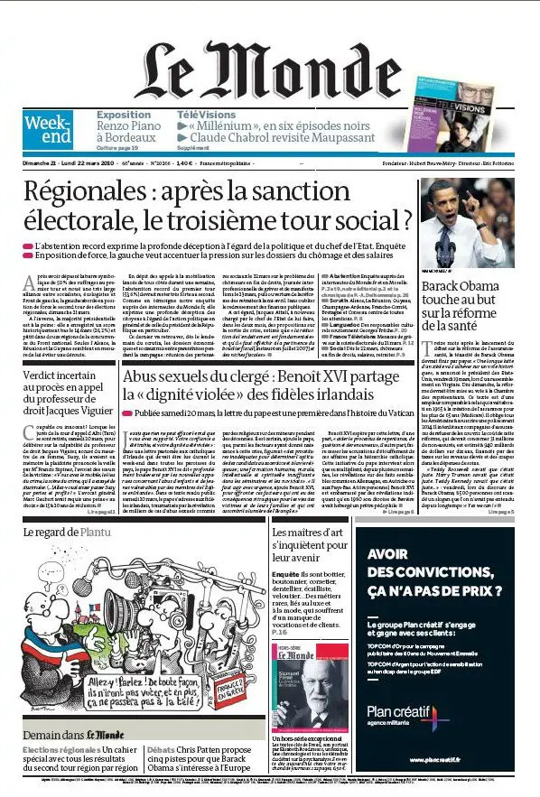 LE MONDE - Dimanche 21 et Lundi 22 mars 2010