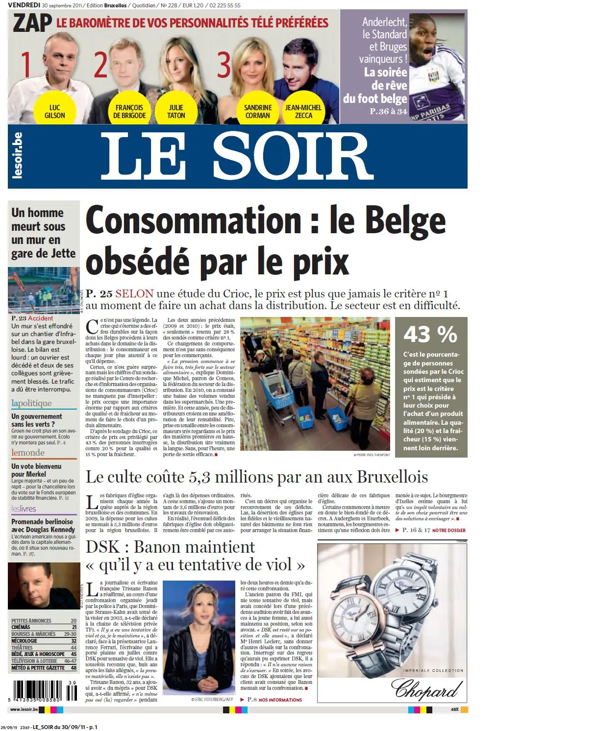 LE SOIR 29 30 SEPTEMBRE 2011