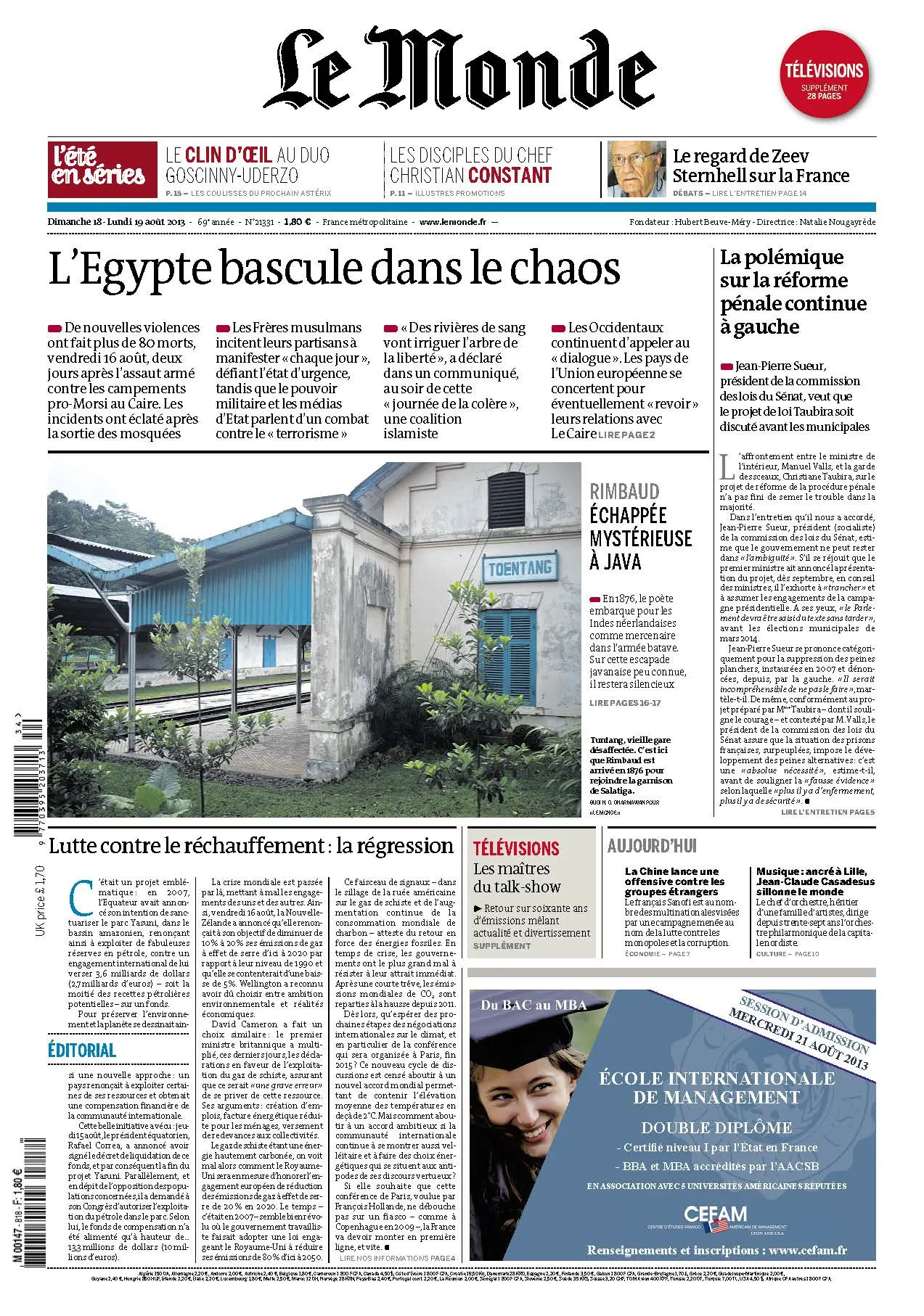 Le Monde et sup TV – Dimanche 18 / Lundi 19 Août 2013
