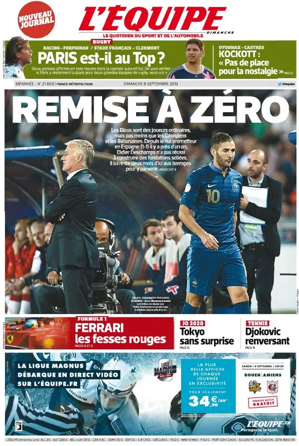 L'Equipe du Dimanche 8 Septembre 2013