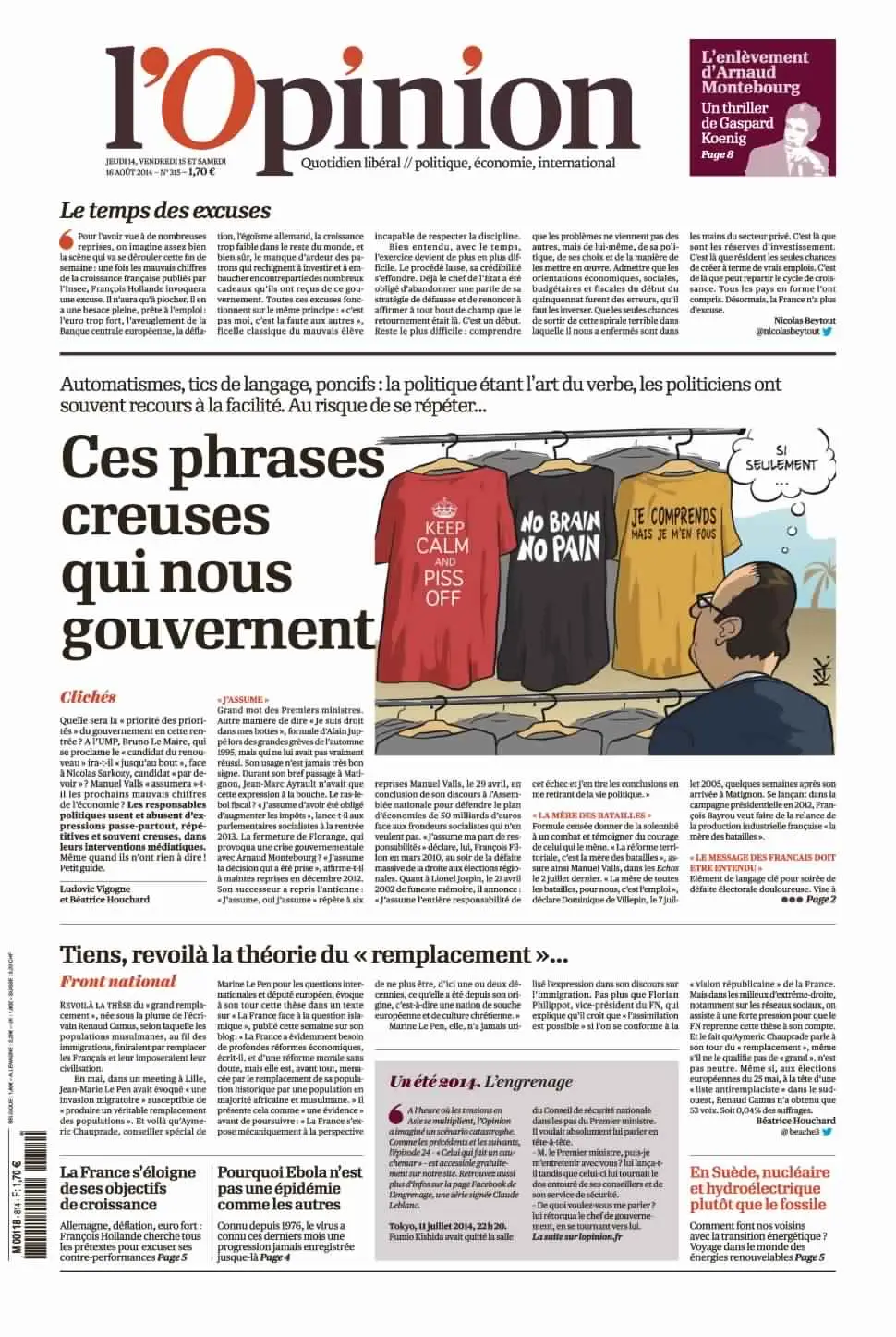 L'Opinion - Jeudi-Vendredi-Samedi 14-15-16 Août 2014