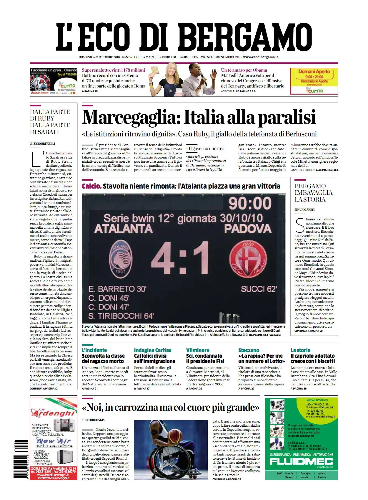L' ECO DI BERGAMO (31 - 10 - 2010)