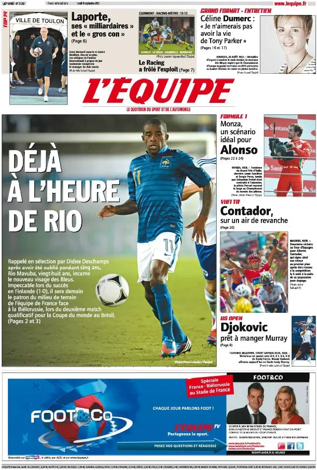 L'Equipe Edition du Lundi 10 Septembre 2012