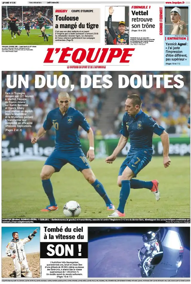 L'Equipe Edition du Lundi 15 Octobre 2012