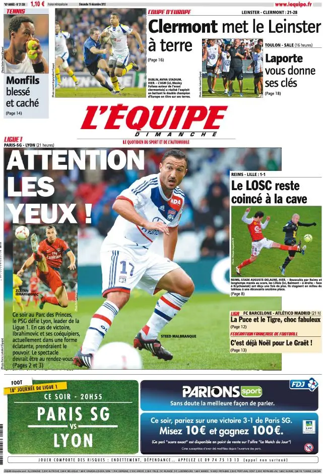 L'Equipe Edition du Dimanche 16 Décembre 2012