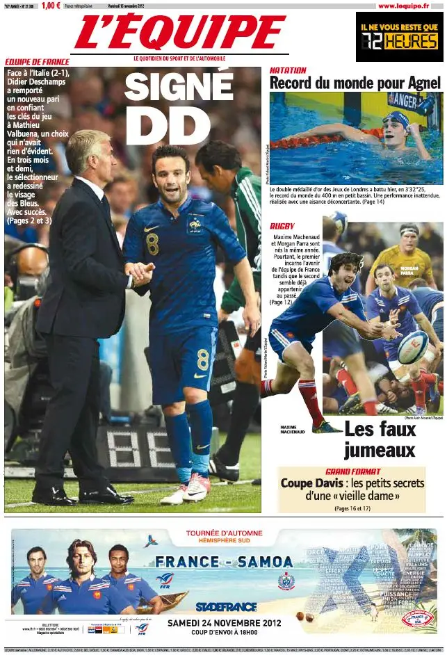 L'Equipe Edition du Vendredi 16 Novembre 2012