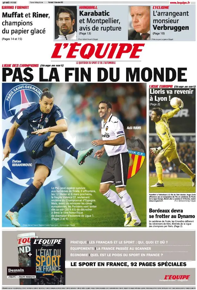 L'Equipe Edition du Vendredi 21 Décembre 2012