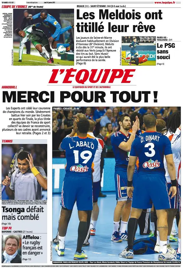 L'Equipe Edition du Jeudi 24 Janvier 2013